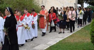Vjernici okupljeni u samostanskom vrtu Sv. Ante, s maslinovim grančicama u rukama, slušajući Lukino evanđelje, prisjećali su se svečanog ali poniznog i nadasve jednostavnog Kristovog ulaska u Jeruzalem na magarčiću, kad su odjekivale riječi mnoštva: „Blagoslovljen Kralj, Onaj koji dolazi u ime Gospodnje! Na nebu mir! Slava na visinama!“ (Lk 19,38). Poput Krista, učenika i mnoštva koje ga je slijedilo …