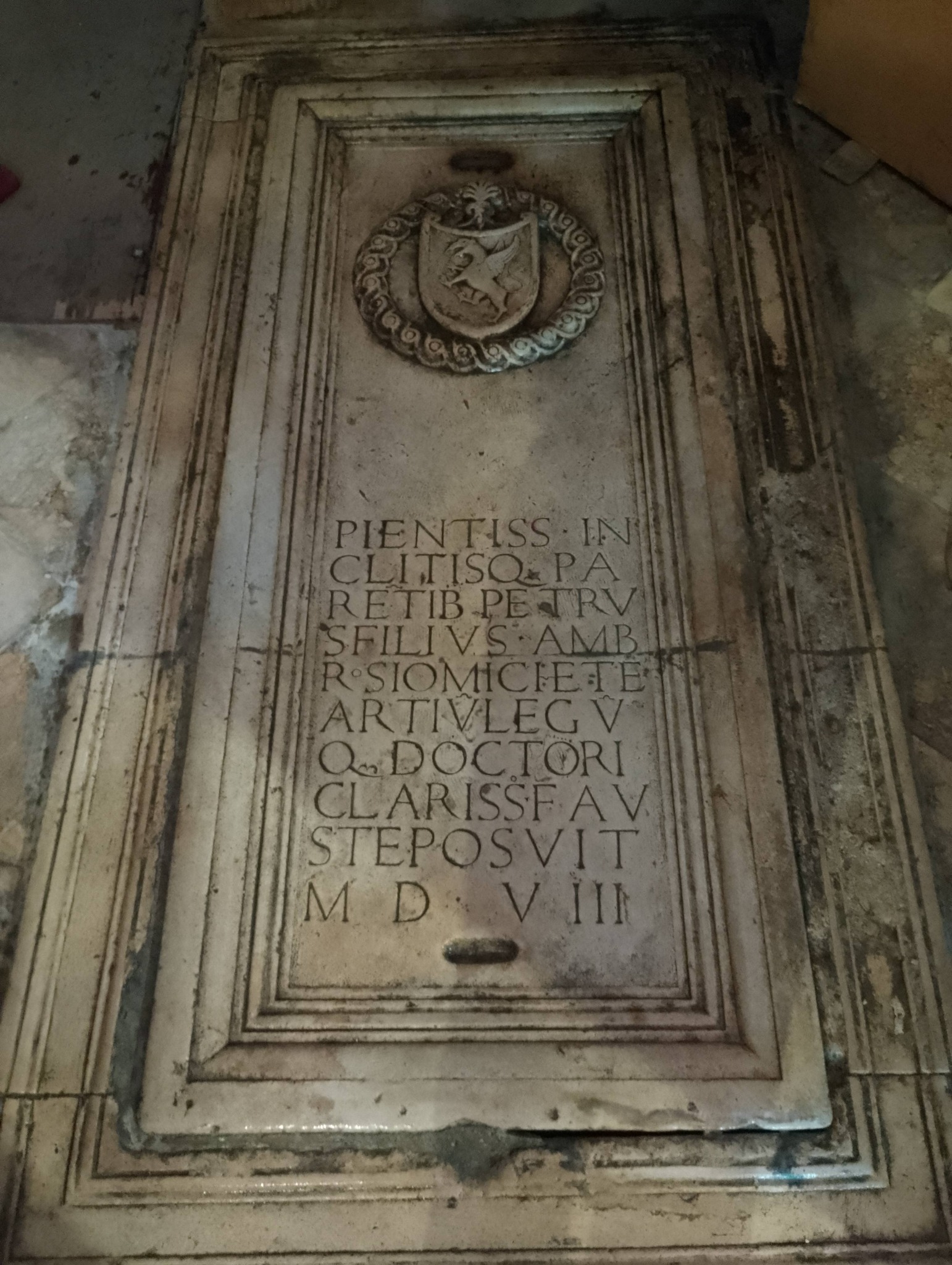 Riječ je o grobnici koju je 1508. godine naručio njegov sin Petar. Na nadgrobnoj ploči uklesan je obiteljski grb s prikazom grifona, okružen renesansnim vijencem, dok se u donjem dijelu nalazi latinski natpis.