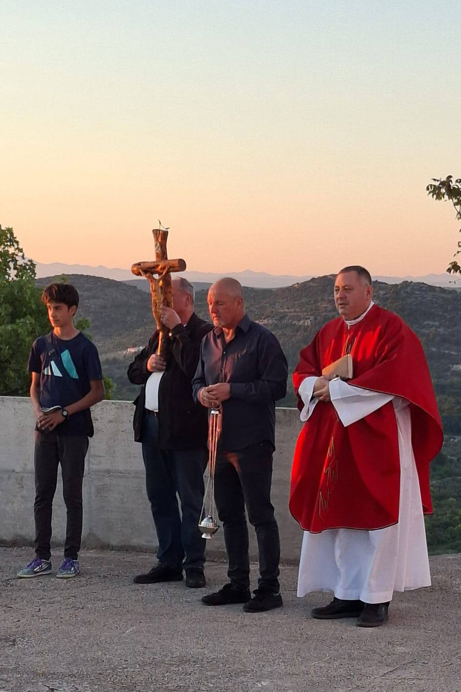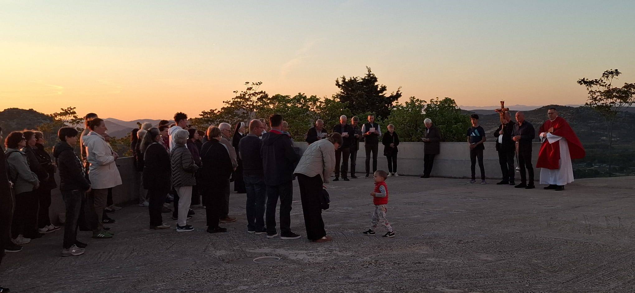 Hodočašće je započelo u samom podnožju brda zajedničkom molitvom svete krunice, nakon čega je u crkvi Gospe od Karmela na Okitu uslijedila sveta misa koju je predvodio župnik don Franjo Glasnović. Po završetku misnog slavlja održan je svečani ophod oko crkve, a završni dio programa upriličen je na platou ispred svetišta. S tog mjesta, koje pruža pogled na vodička polja i maslinike, župnik je zazvao Božji blagoslov na njive, vinograde i maslinike, moleći za zaštitu i obilan urod u nadolazećoj godini.