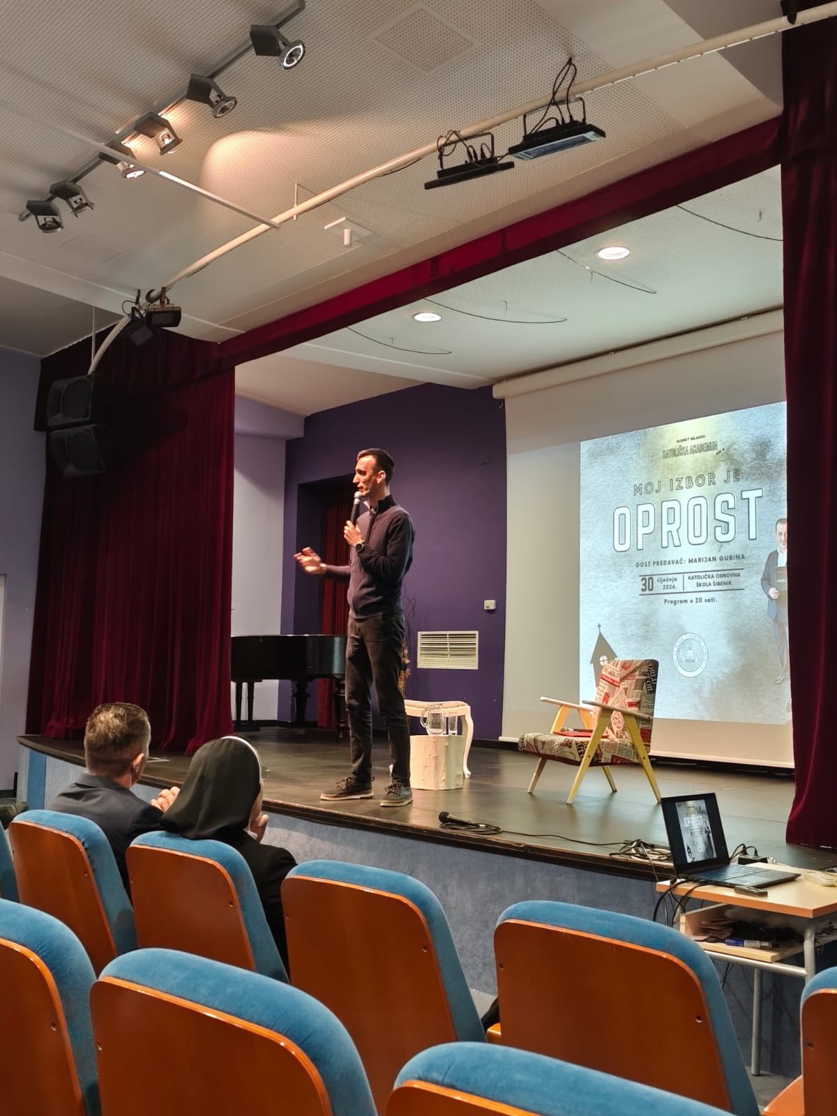 U dvorani Katoličke osnovne škole u Šibeniku, u petak 30. siječnja 2026. godine, održan je još jedan susret u sklopu Katoličke akademije. Gost predavač bio je Marijan Gubina, mirotvorac i autor potresnog autobiografskog djela „260 dana“, koji je okupljenima posvjedočio o snazi praštanja usred najtežih životnih iskušenja.