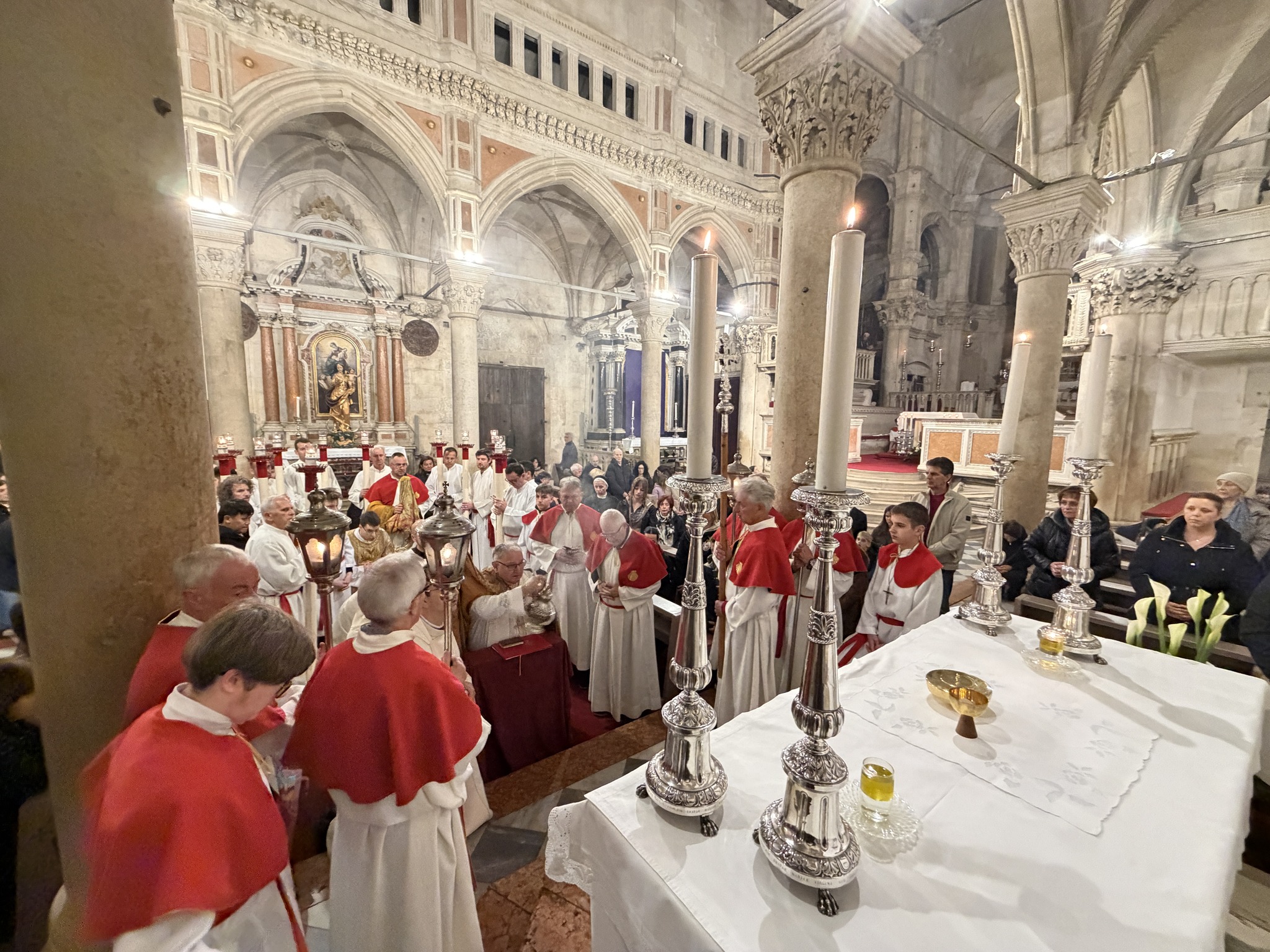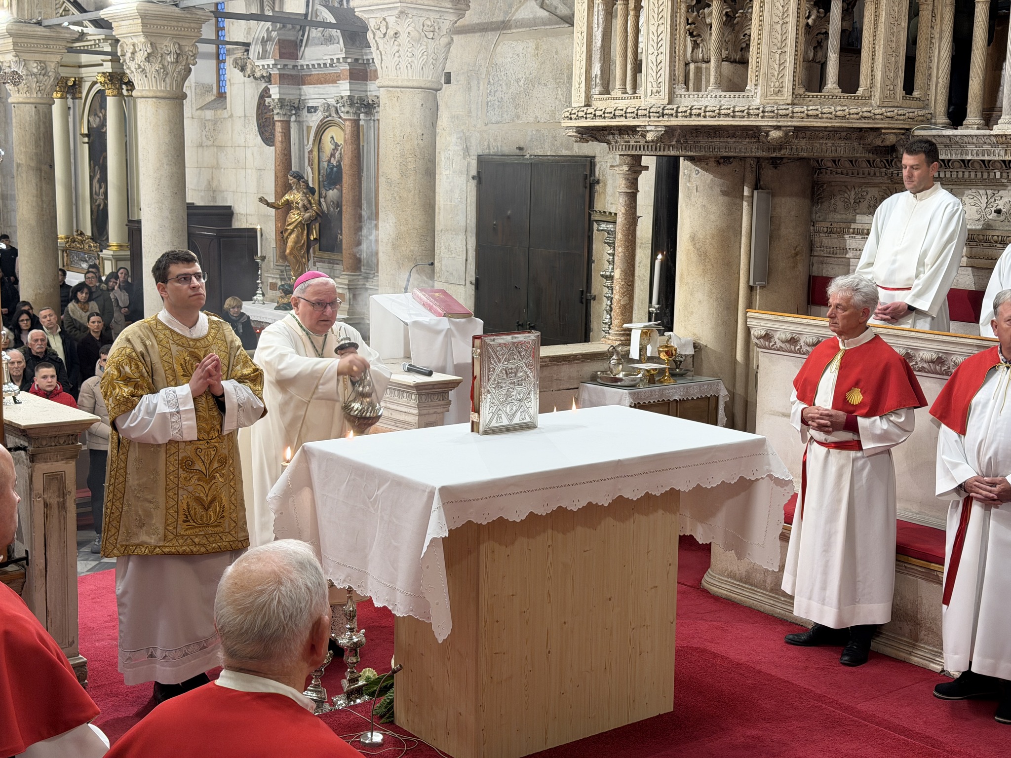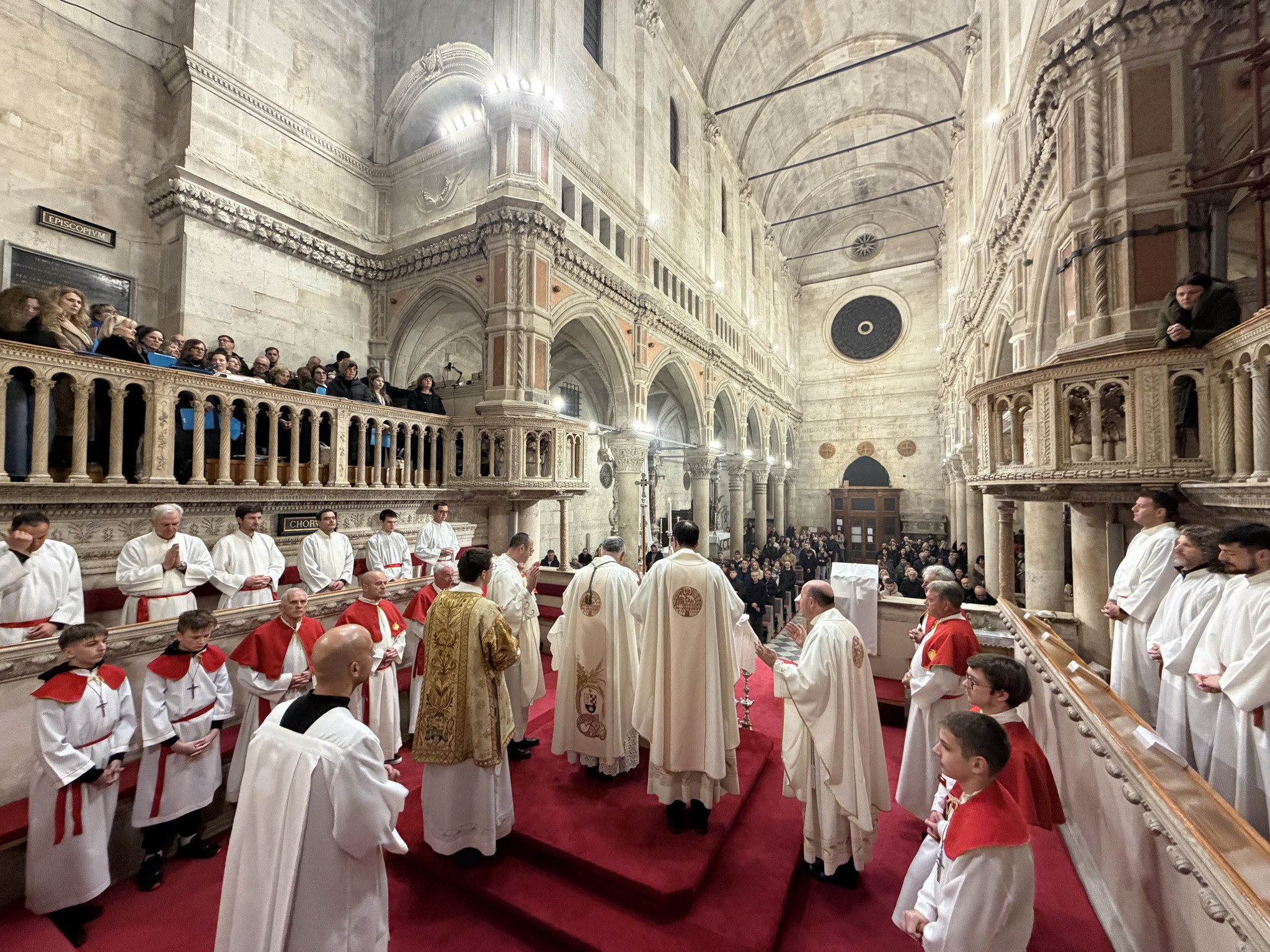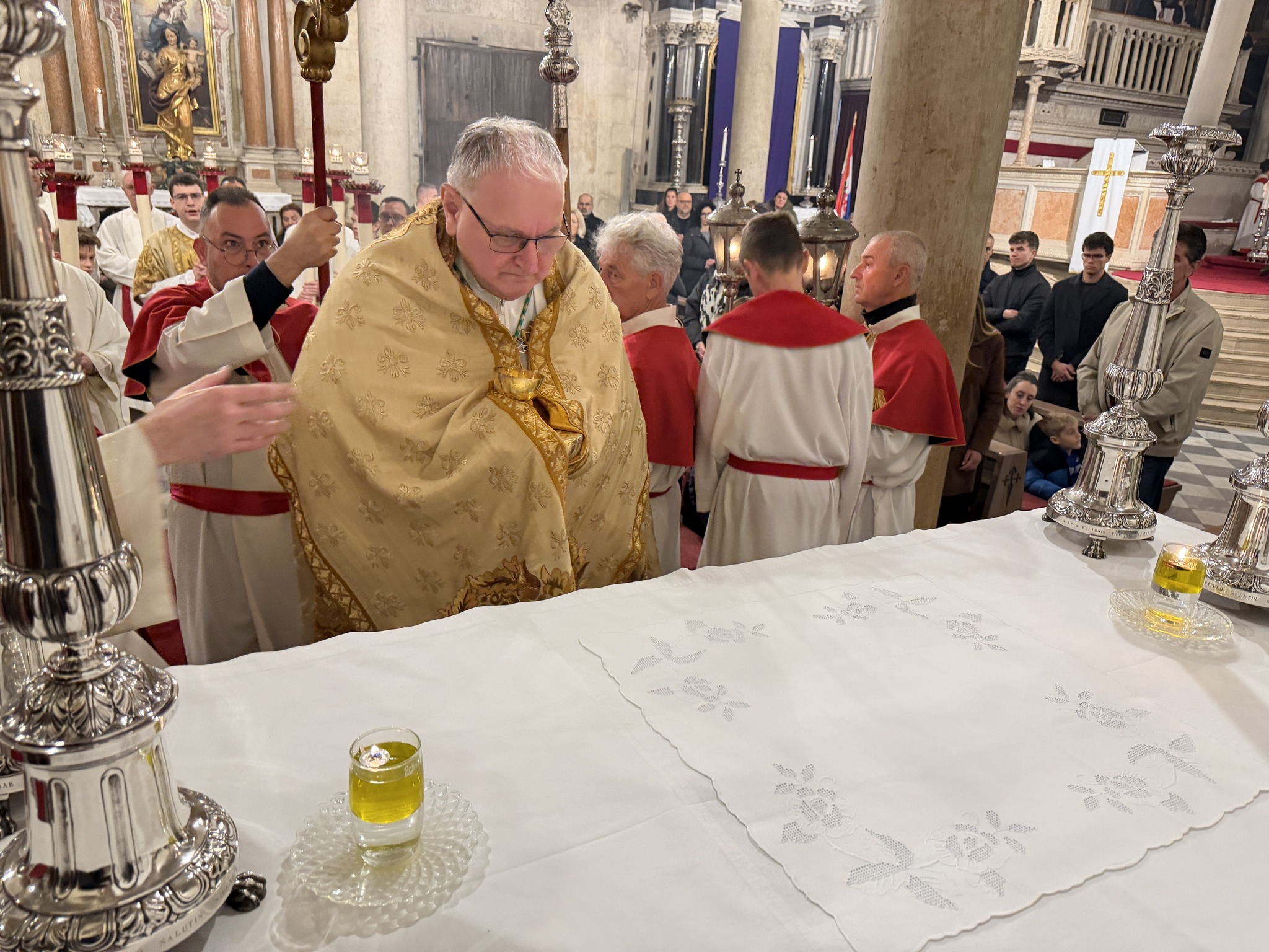 Na Veliki četvrtak, 2. travnja, u katedrali svetoga Jakova u Šibeniku svečano je slavljena Misa Večere Gospodnje. Euharistijsko slavlje predvodio je šibenski biskup mons. Tomislav Rogić, a u koncelebraciji su sudjelovali katedralni župnik don Krešimir Mateša, biskupov tajnik don Ivica Bašić i župnik Žirja i Kaprija don Oleg Petrović. Posluživao je đakon don Robert Maretić.
