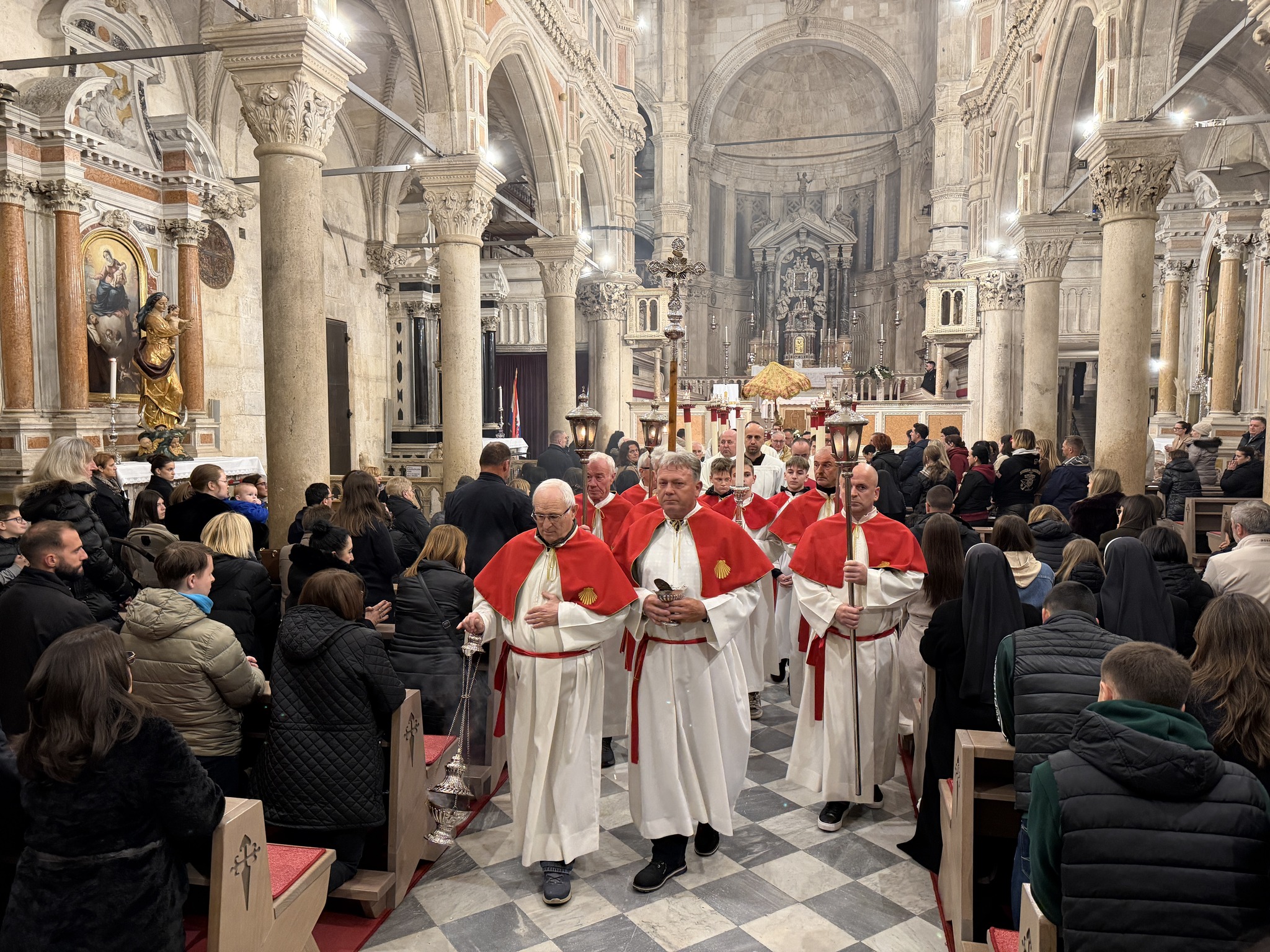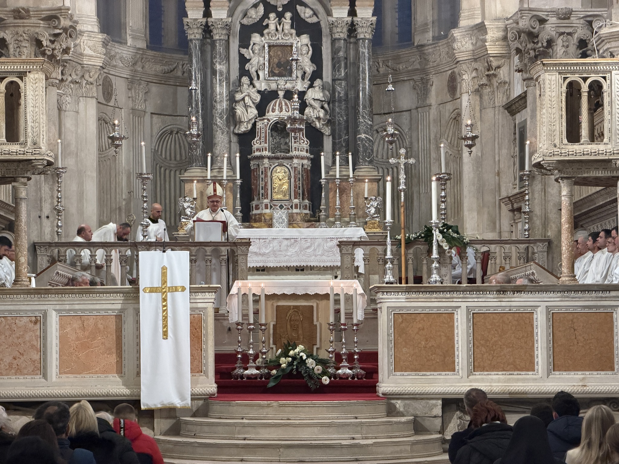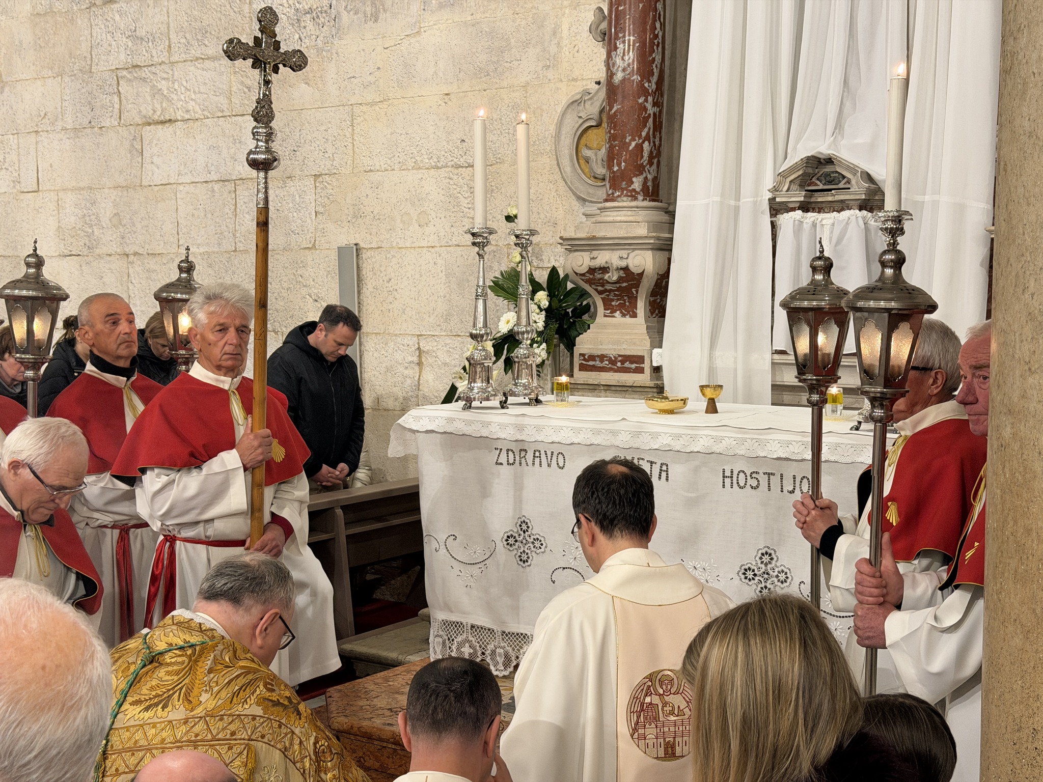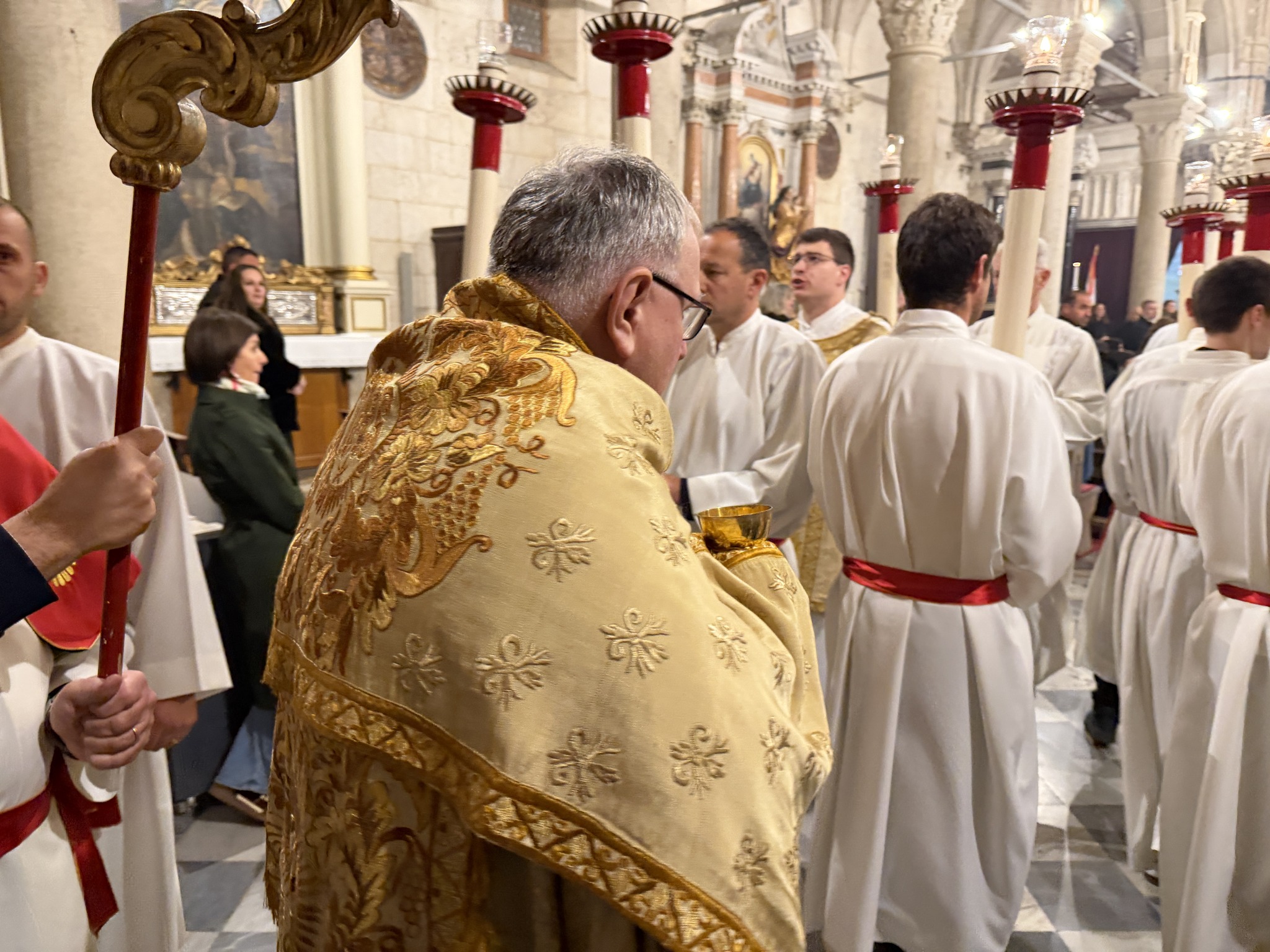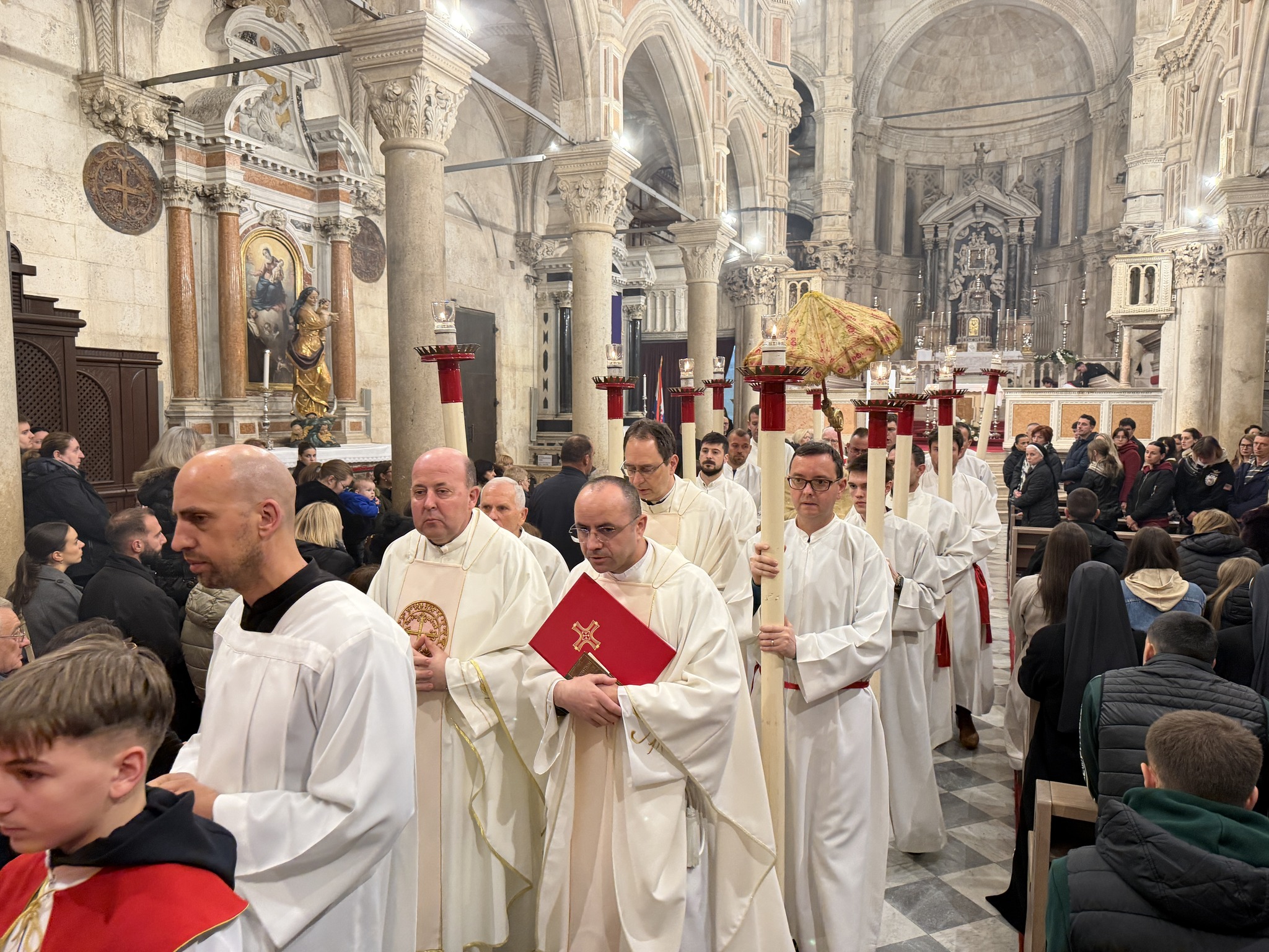 Na Veliki četvrtak, 2. travnja, u katedrali svetoga Jakova u Šibeniku svečano je slavljena Misa Večere Gospodnje. Euharistijsko slavlje predvodio je šibenski biskup mons. Tomislav Rogić, a u koncelebraciji su sudjelovali katedralni župnik don Krešimir Mateša, biskupov tajnik don Ivica Bašić i župnik Žirja i Kaprija don Oleg Petrović. Posluživao je đakon don Robert Maretić.