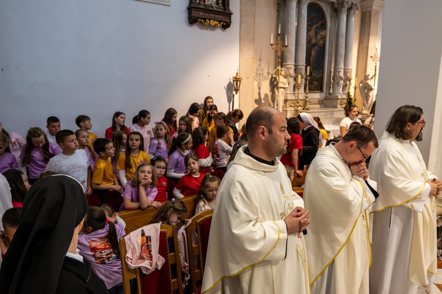 Prije početka svete mise održao se kratak igrokaz o životu sv. Franje nakon čega je slavljena sveta misa koju je predvodio gvardijan i župnik fra Zoran Kutleša u koncelebraciji sa više svećenika. Zborovima je ravnala Jelena Mikulandra uz pratnju Ante Lapića na orguljama. Djeca su kao i prijašnjih godina u svetoj misi kao milostinju dala novčani prilog za pomoć jednom teško bolesnom djetetu iz župe Proložac.