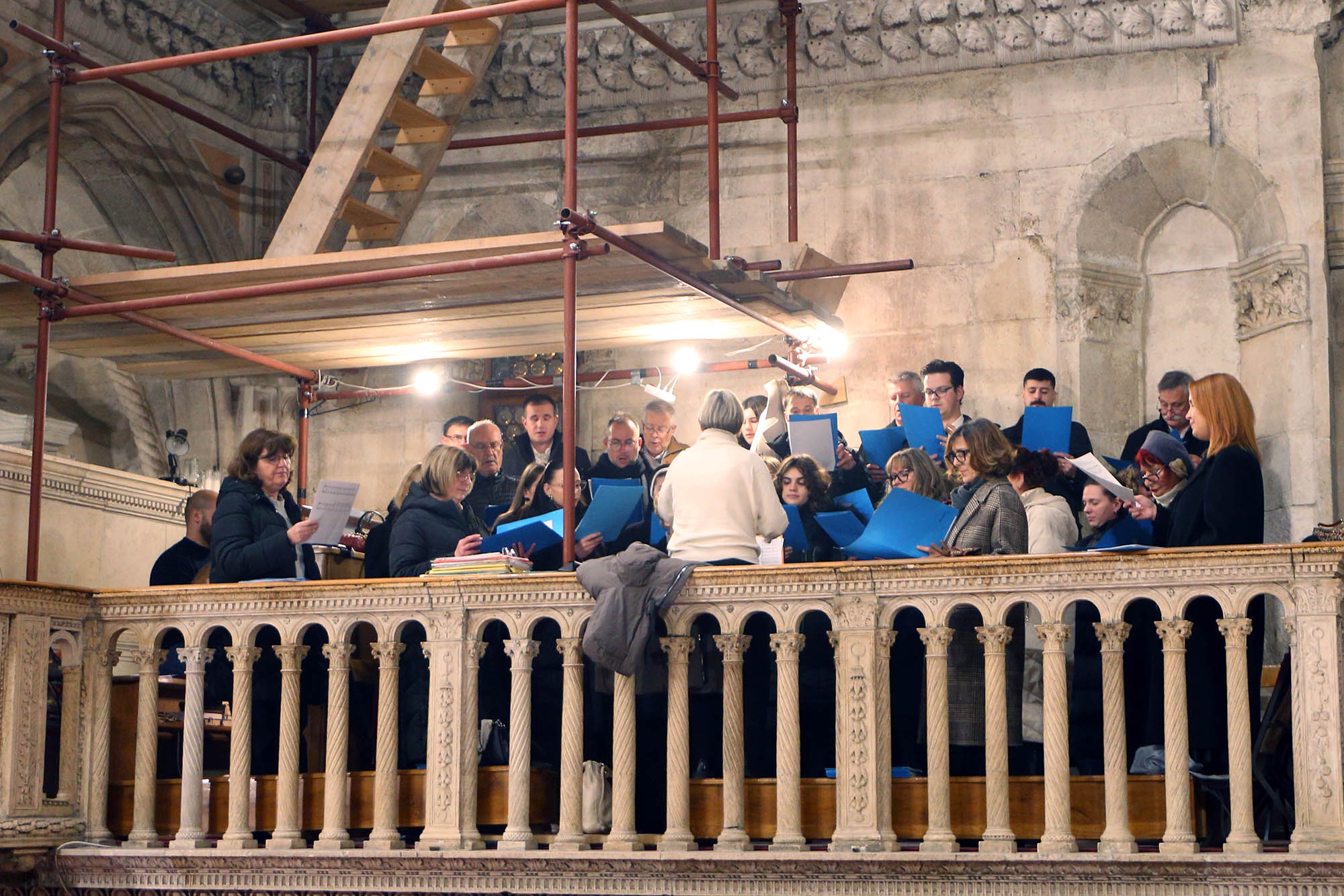 Blagdansko ozračje i liturgijsko pjevanje animirao je Mješoviti zbor katedrale svetog Jakova. Pod ravnanjem prof. Jelene Mikulandre i uz orguljašku pratnju Nikole Lovrića Caparina, zbor je izveo bogat repertoar tradicionalnih božićnih napjeva. Kao uvertiru u samu misu, zbor je za okupljene vjernike održao i prigodni predprogram božićnih pjesama, čime je dodatno uveličana božićna noć.