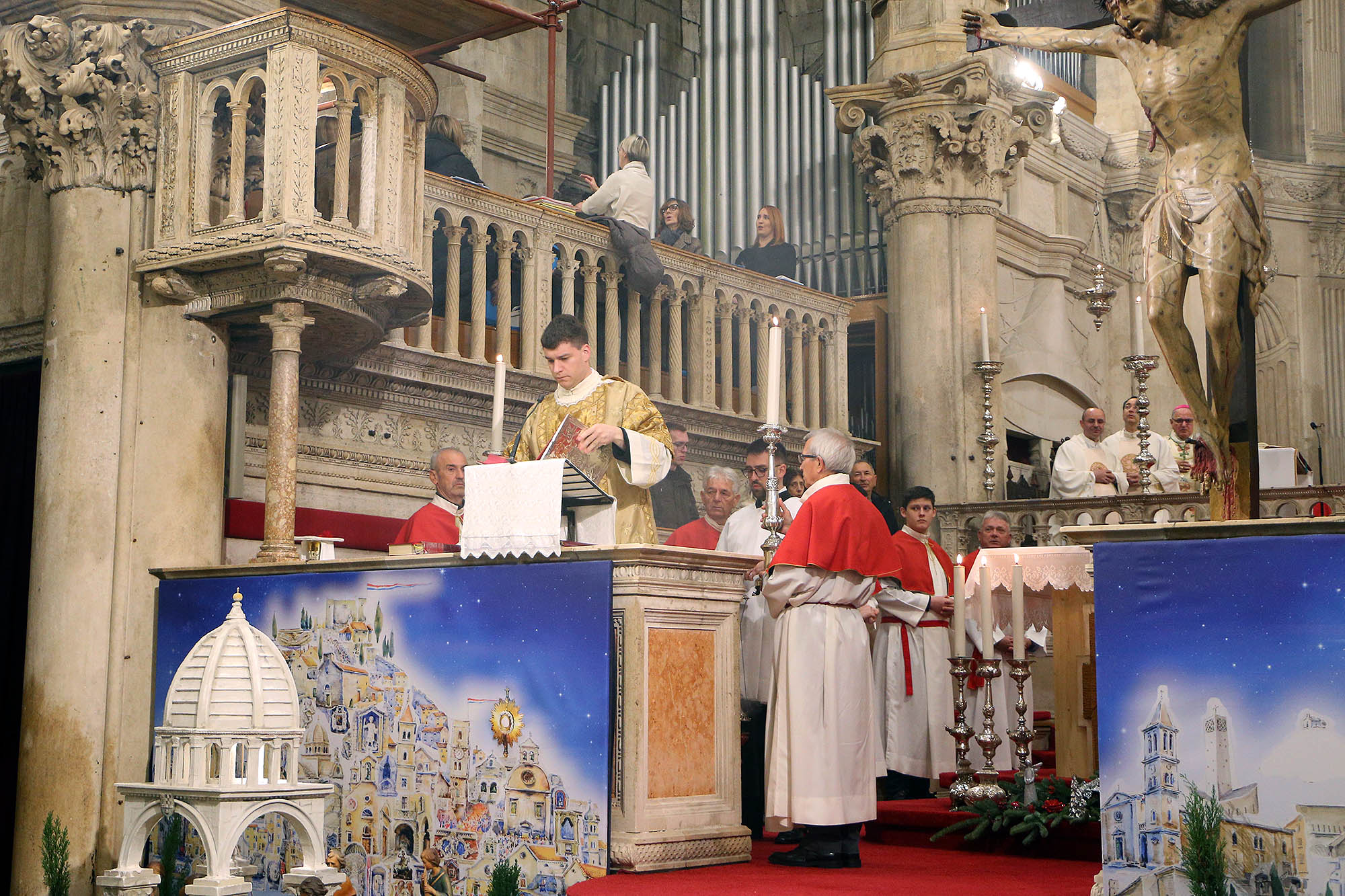 U ozračju božićne radosti šibenski biskup Tomislav Rogić predvodio je svečano misno slavlje polnoćke u katedrali svetog Jakova. U zajedništvu s vjernicima grada Šibenika, biskup je u homiliji istaknuo duboku simboliku utjelovljenja u suvremenom svijetu, obilježenom krizom nade i smisla.