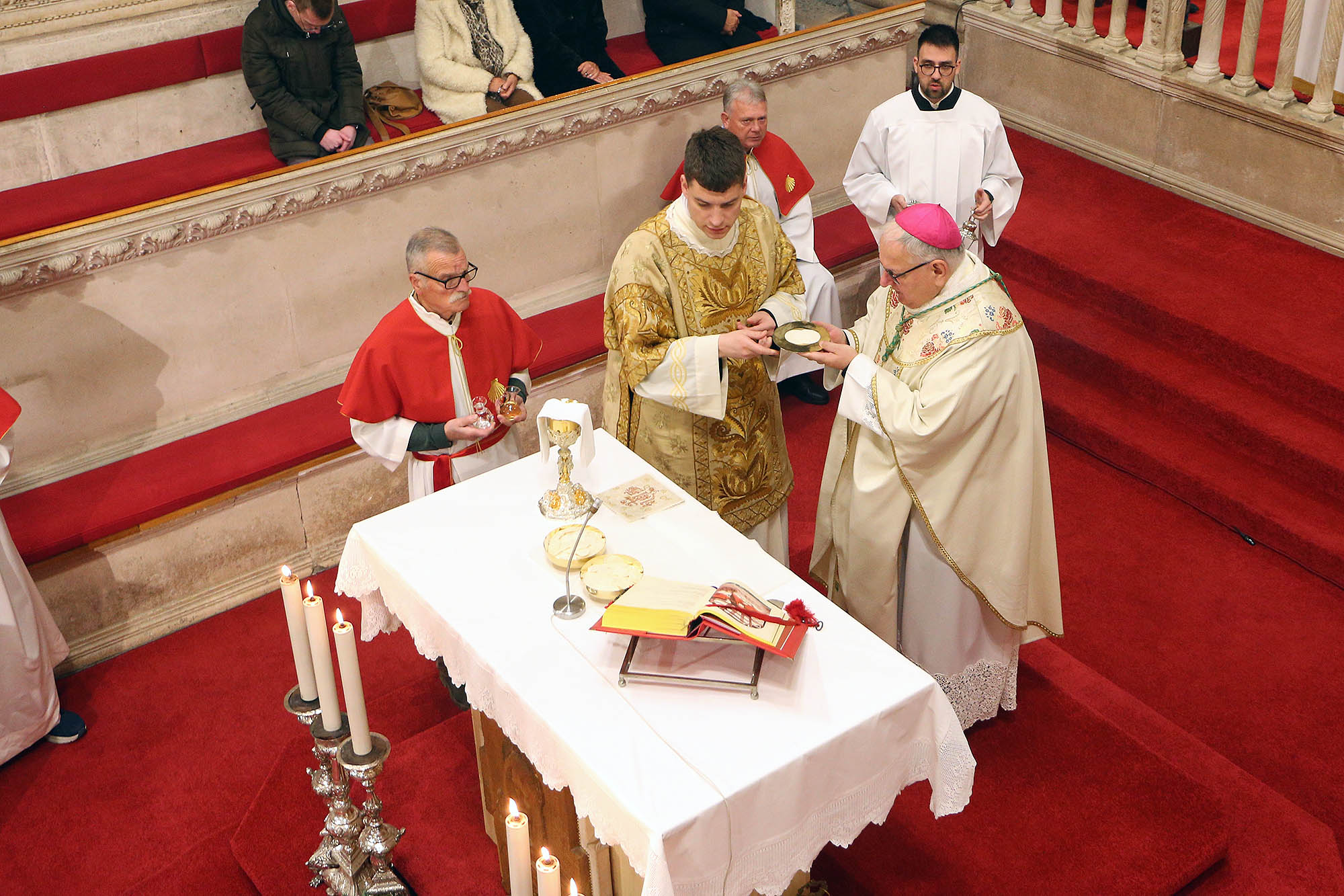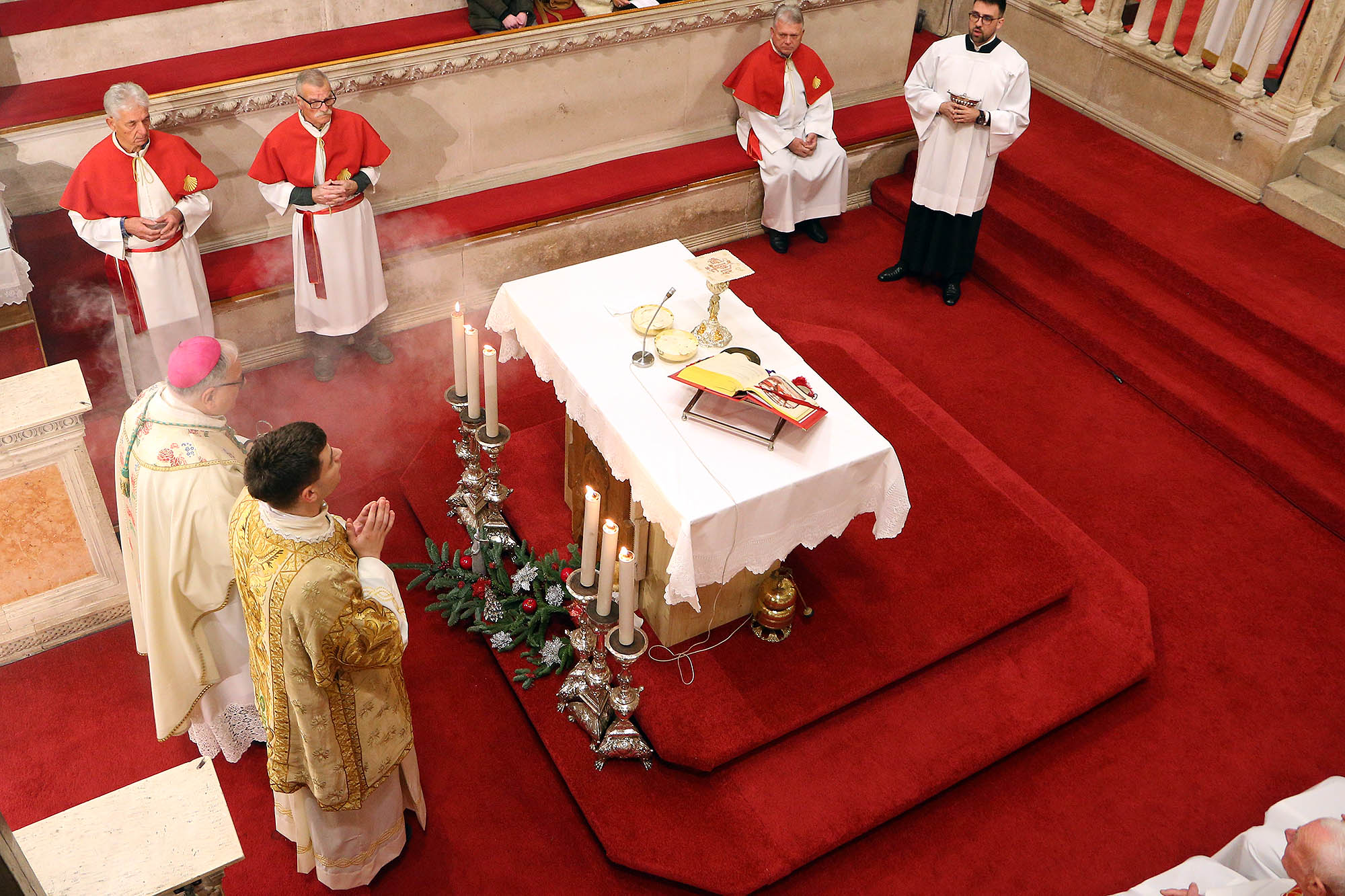 Uz biskupa Rogića koncelebrirali su katedralni župnik don Krešimir Mateša i biskupov tajnik don Ivica Bašić, dok je kod oltara posluživao đakon don Robert Maretić.