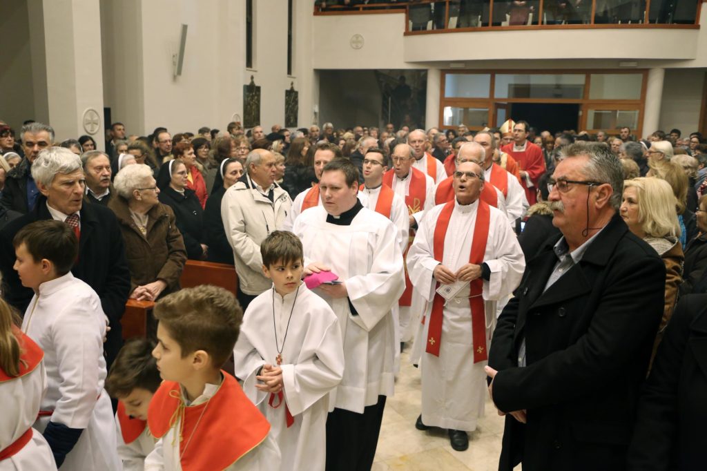 U uvodnom djelu misnog slavlja, nazočne vjernike koji su došli na misno slavlje u velikom broju, pozdravio je župnik vlč. Pavlović. Posebno je pozdravio vjernike iz župe Vodice i iz katedralne župe svetog Jakova koji su organizirano hodočastili na slavlje. Svima je preporučio bl. Stepinca kao uzor i primjer koji treba nasljedovati.