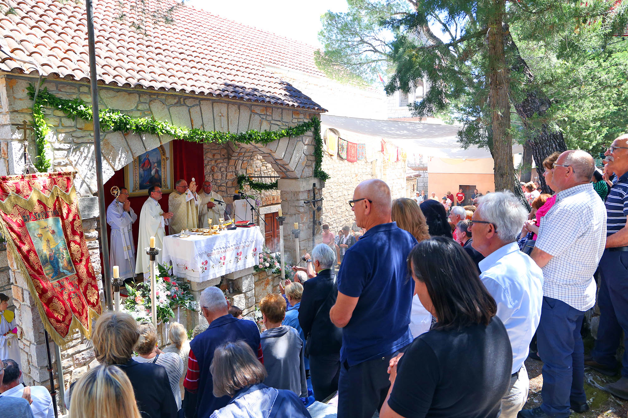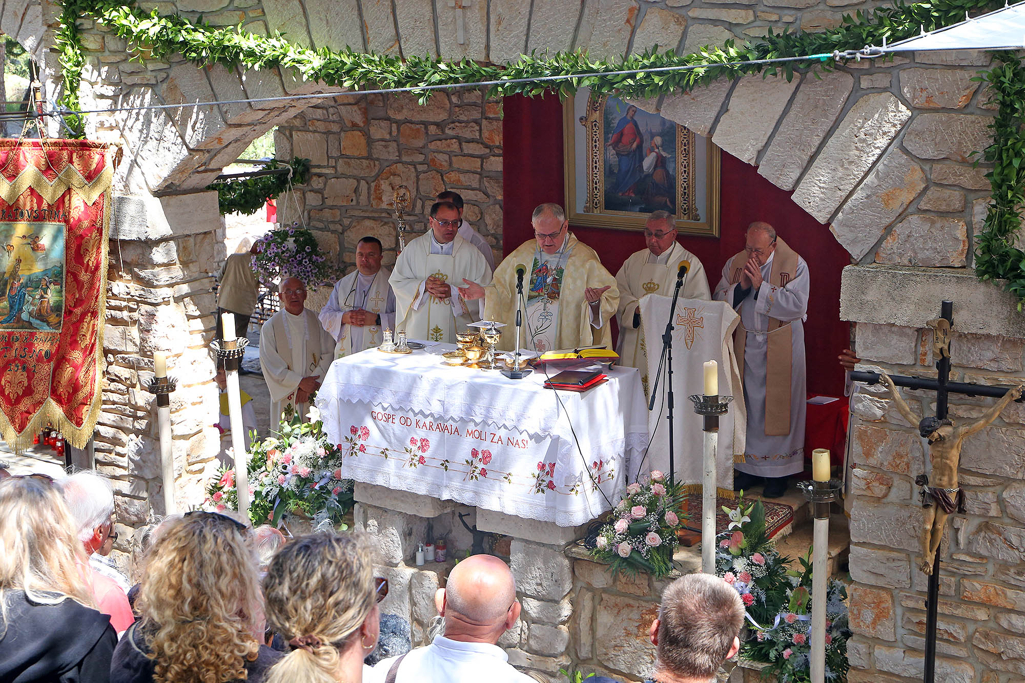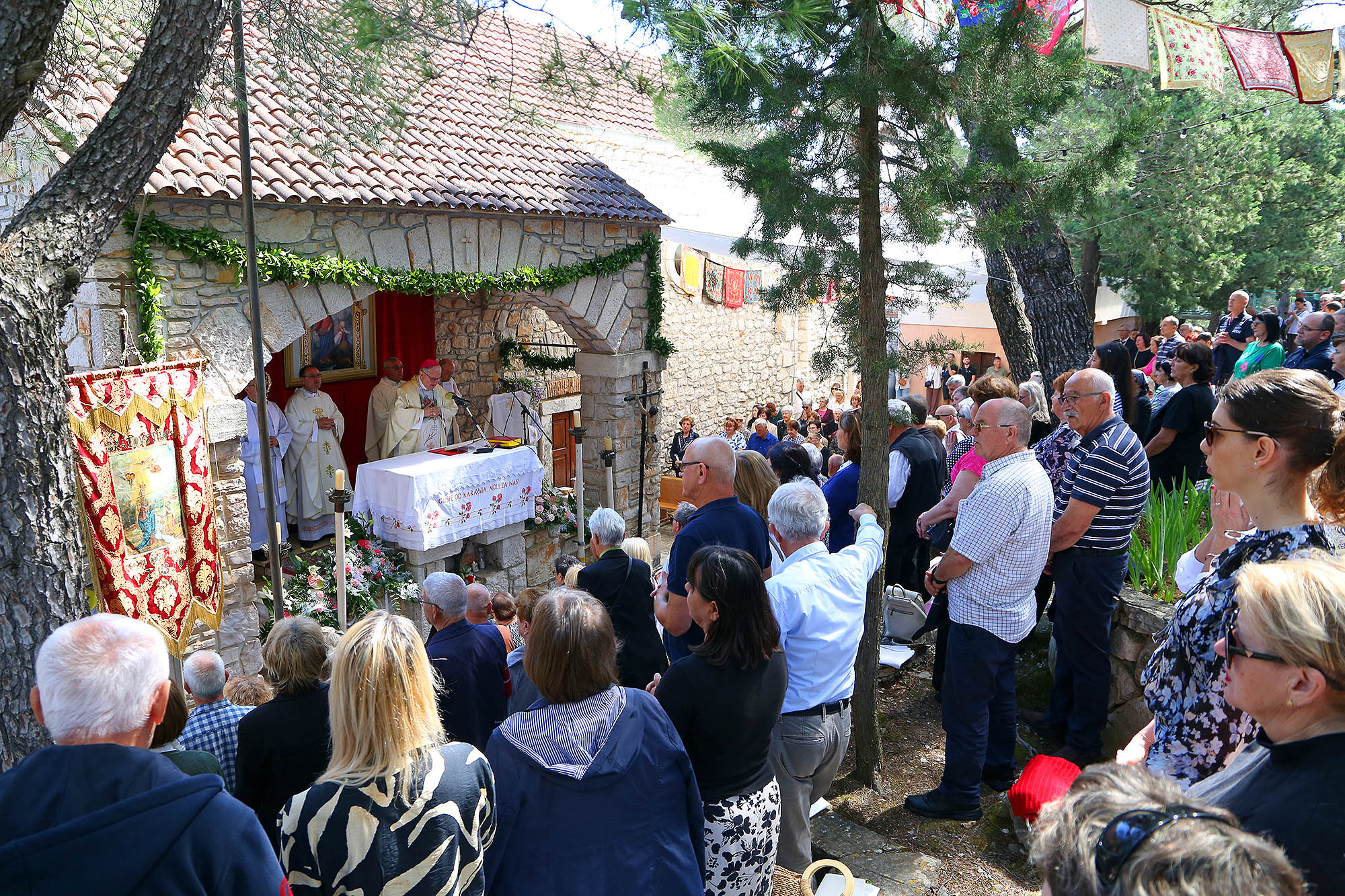 Svetkovina Gospe od Karavaja svečano je proslavljena u ponedjeljak, 26. svibnja, u župi Tisno na Karavaju, jednom od četiri marijanska svetišta Šibenske biskupije. Središnje misno slavlje predvodio je šibenski biskup Tomislav Rogić, uz prisustvo brojnih vjernika iz cijele Šibenske biskupije i susjedne Zadarske nadbiskupije.