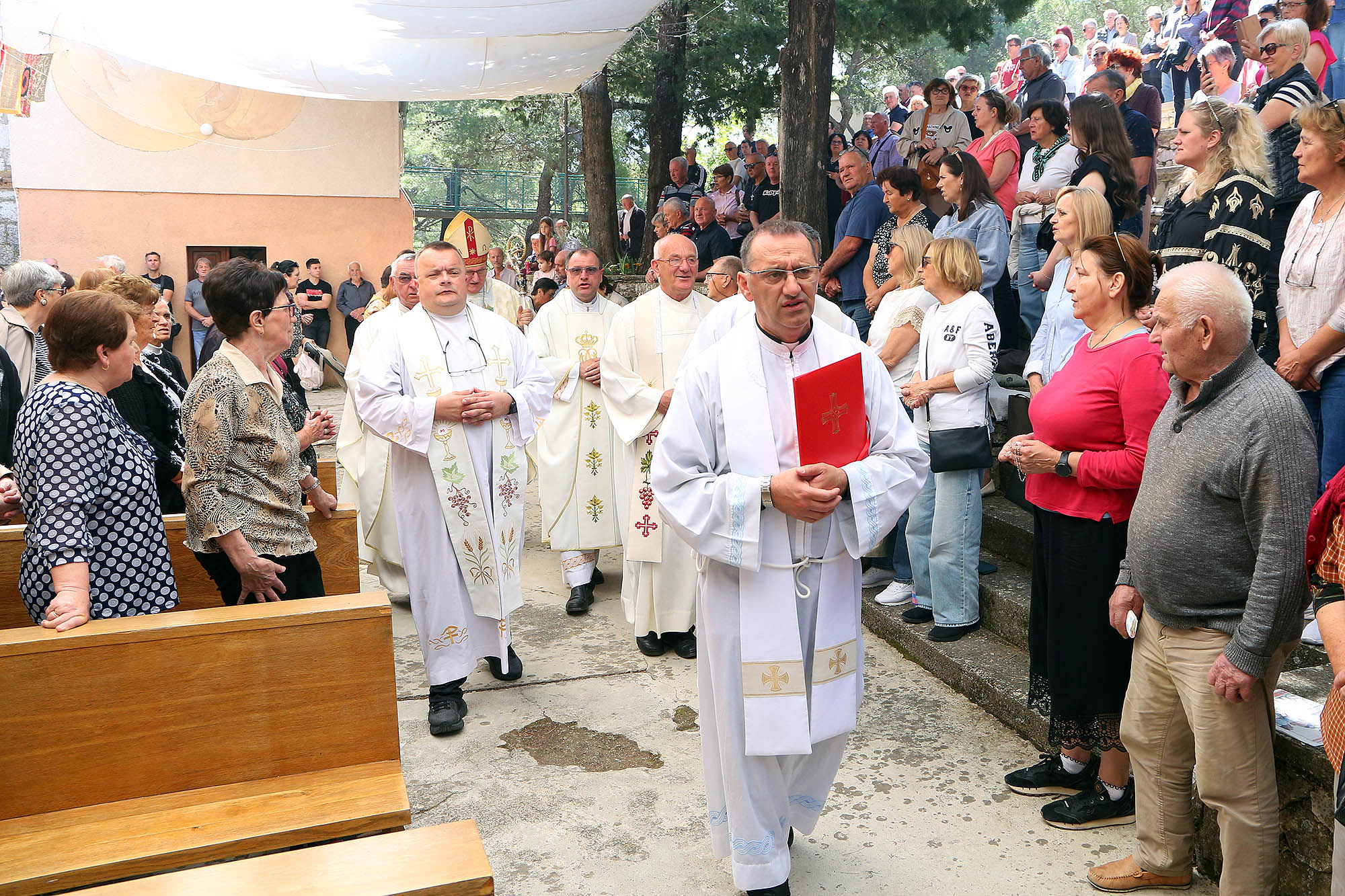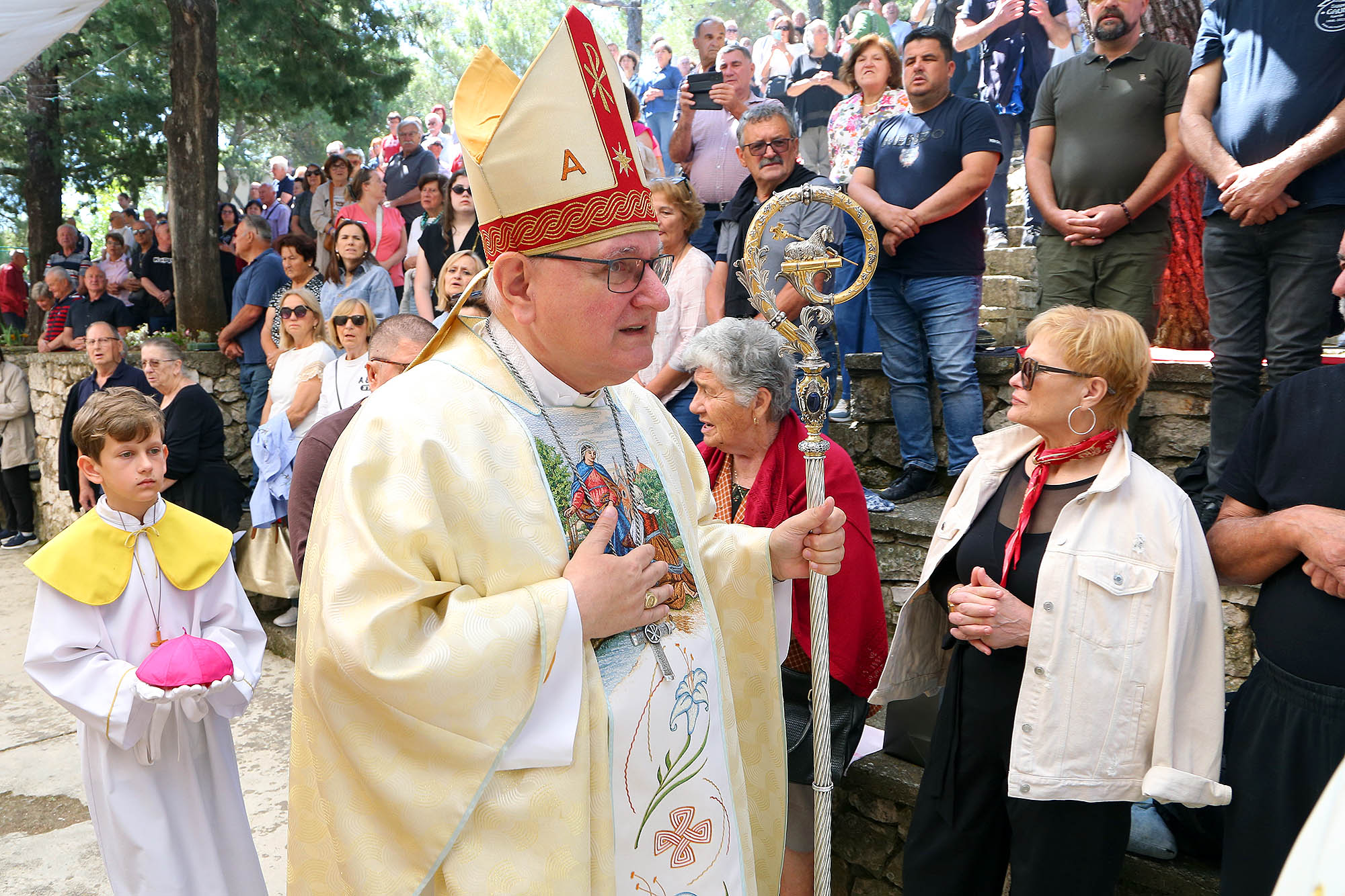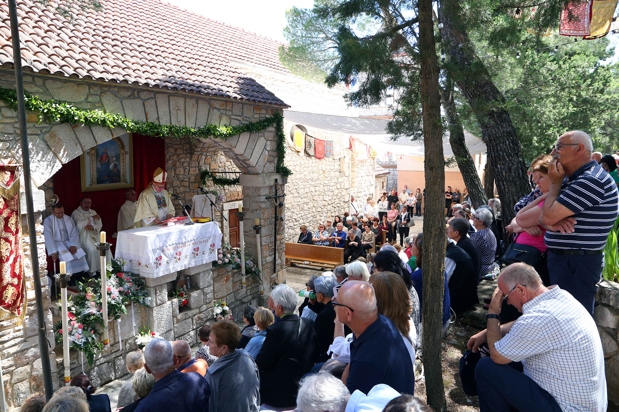 Svetkovina Gospe od Karavaja svečano je proslavljena u ponedjeljak, 26. svibnja, u župi Tisno na Karavaju, jednom od četiri marijanska svetišta Šibenske biskupije. Središnje misno slavlje predvodio je šibenski biskup Tomislav Rogić, uz prisustvo brojnih vjernika iz cijele Šibenske biskupije i susjedne Zadarske nadbiskupije.