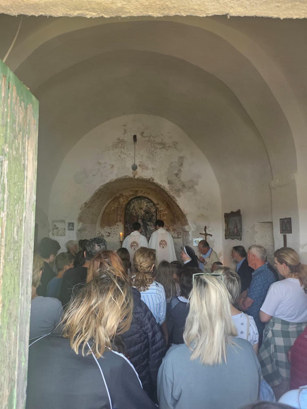 Susret je i ove godine započeo u crkvi Gospe Srimske uokolo koje su dolačka polja koja su se nekada naveliko obrađivala. Euharistijsko slavlje predvodio je župni vikar don Šime Pleadin uz katedralnog župnika don Krešimira Matešu koji je održao prigodnu homiliju. Potaknuo je okupljene vjernike da iz primjera sv. Josipa naučimo u tišini svakodnevice biti uzori radišnosti i izvršavanja Božje volje po kojoj postižemo duboku nutarnju radost i mir u trajnoj blizini s našim Gospodinom Isusom i njegovom i našom majkom Marijom.